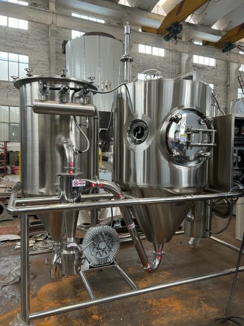 The LPG-5 Centrifugal Spray Dryer, designed with a 5kg/h processing capacity and constructed with SUS304 material for all product-contacting parts, is a testament to SINOTHERMO’s commitment to meeting the specific, high-demand needs of innovative industries. Key features of this advanced unit include its compact linear layout, efficient electric heating source, and an integrated cyclone and bag filter system for optimal solid recovery. The touchscreen PLC controller with remote control capability ensures precise operation and flexibility.